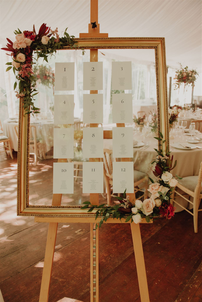 Montage de 10 cadres dorés qui servent de plan de table. Il n'y a plus qu'à insérer ses propres cartes !!! Très original et modèle unique
