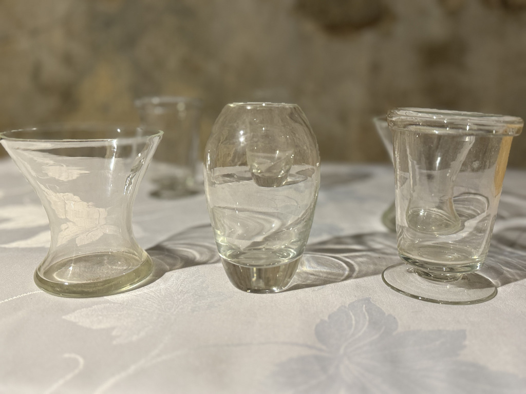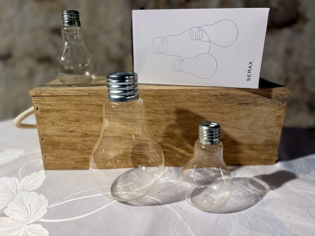 Ensemble de vases contemporains , de la marque Serax, en 2 tailles : 5 grandes ampoules : hauteur : 16 cm, diamètre : 9 cm 15 petites ampoules : hauteur : 11 cm, diamètre : 6,5 cm