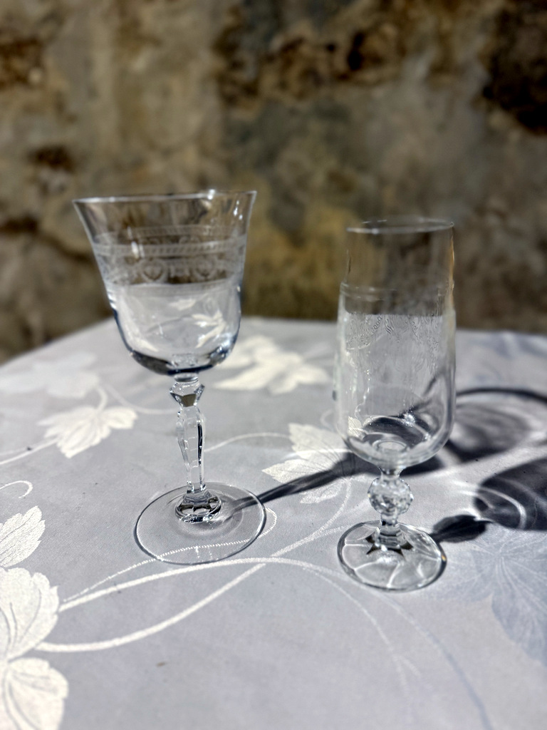 Lot de 10 verres à pied ciselés anciens en cristal Lot de 10 flutes ciselées anciennes, en cristal, assorties aux verres Magnifiques pièces de collection, qui sublimeront les tables