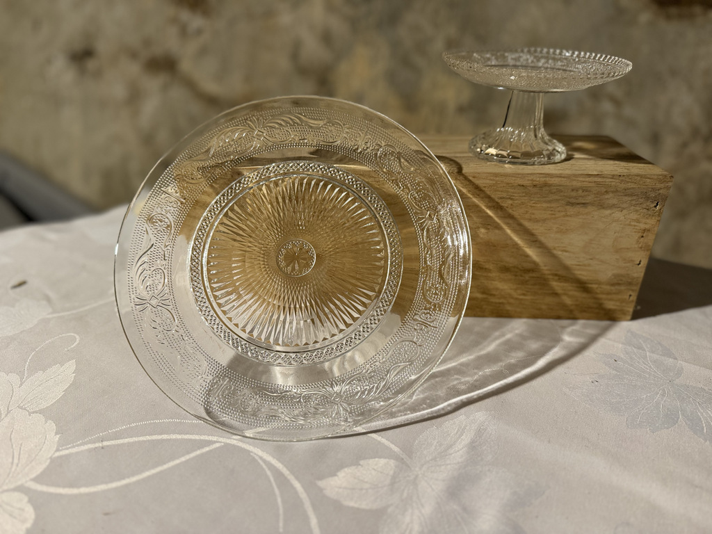 Lot de 15 petits présentoirs à gâteaux + Lot de 15 petites assiettes assorties + lot de 10 grandes assiettes ciselées assorties Ensemble très élégant et raffiné